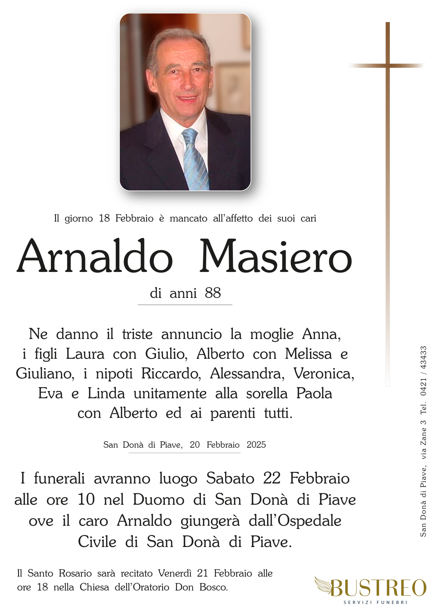 Possa il vostro dolore trovare conforto nel sostegno del Signore e nella certezza che vostro padre è sempre vicino a voi. Il calore della nostra amicizia riscaldi i vostri cuori.