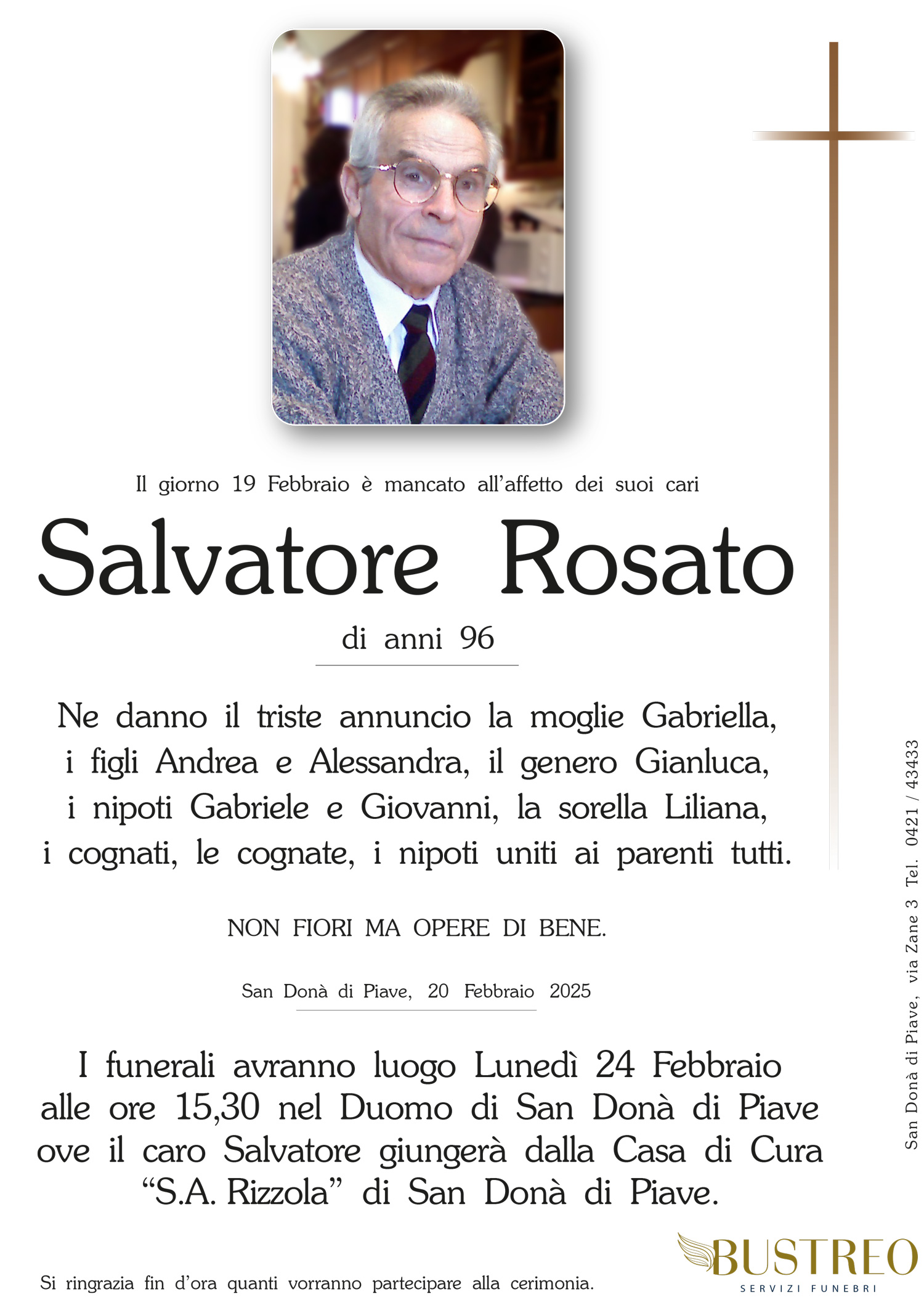 Possa il vostro dolore trovare conforto nel sostegno del Signore e nella certezza che vostro padre è sempre vicino a voi. Il calore della nostra amicizia riscaldi i vostri cuori.