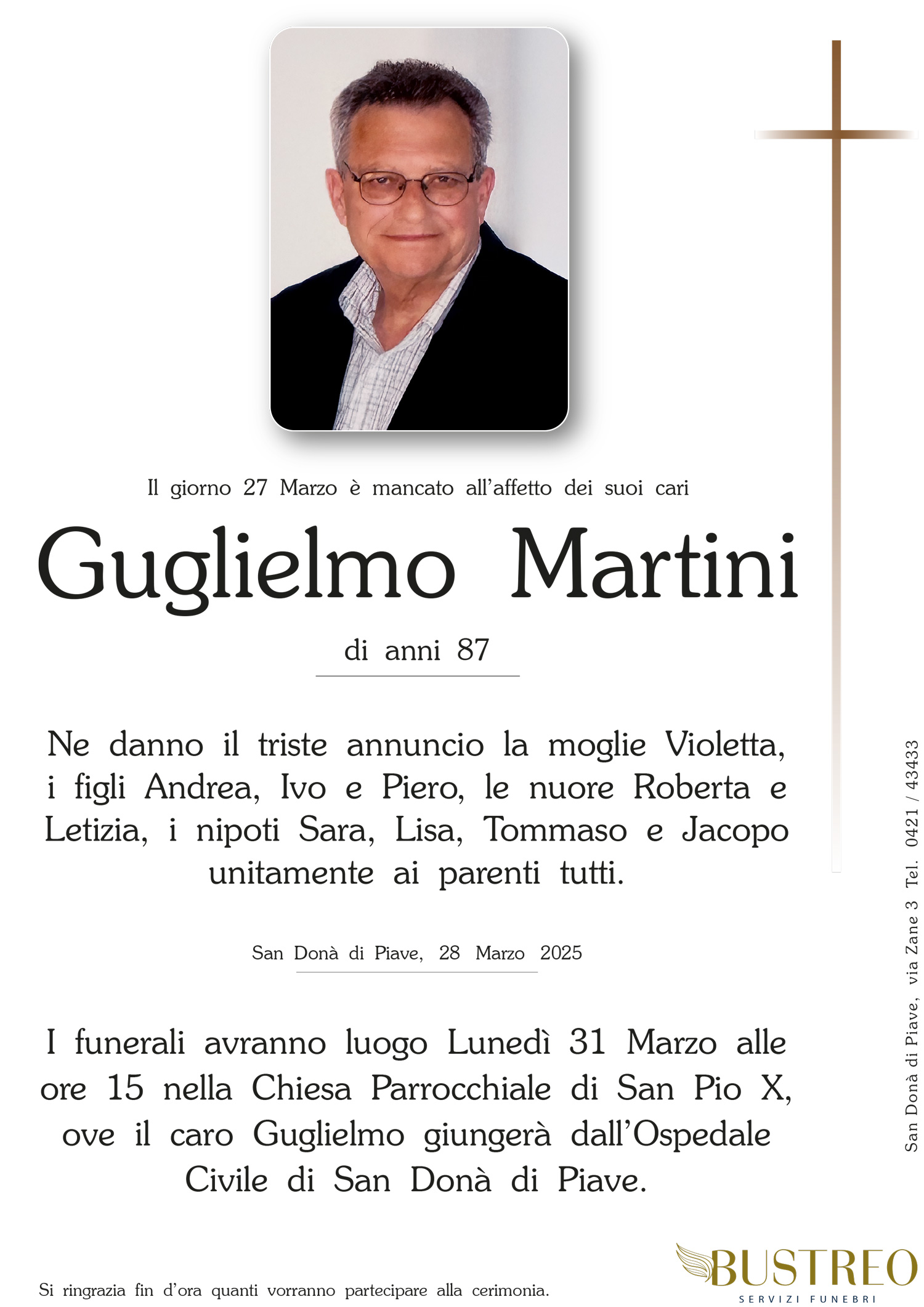 Possa il vostro dolore trovare conforto nel sostegno del Signore e nella certezza che vostro padre è sempre vicino a voi. Il calore della nostra amicizia riscaldi i vostri cuori.
