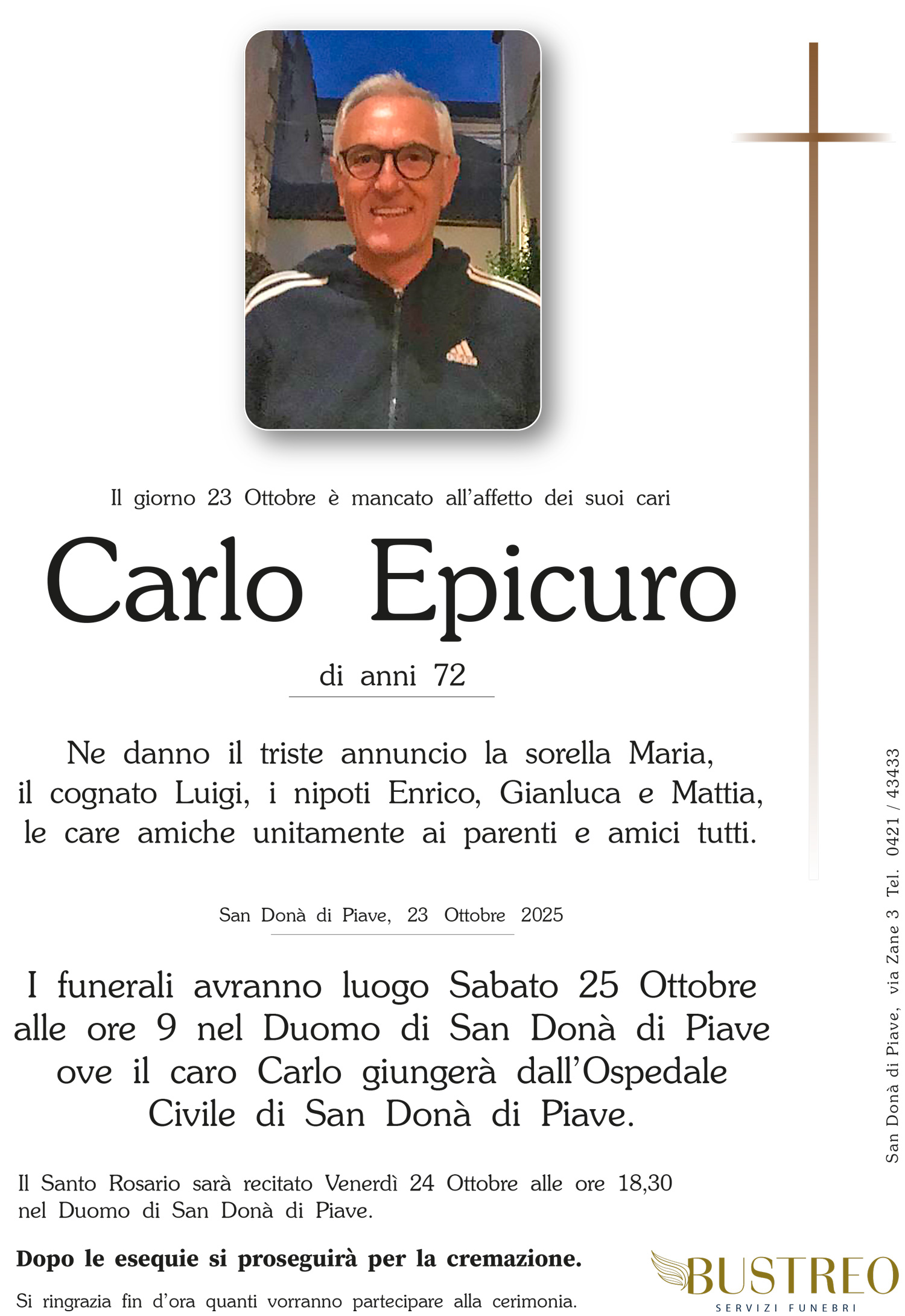 Possa il vostro dolore trovare conforto nel sostegno del Signore e nella certezza che vostro padre è sempre vicino a voi. Il calore della nostra amicizia riscaldi i vostri cuori.