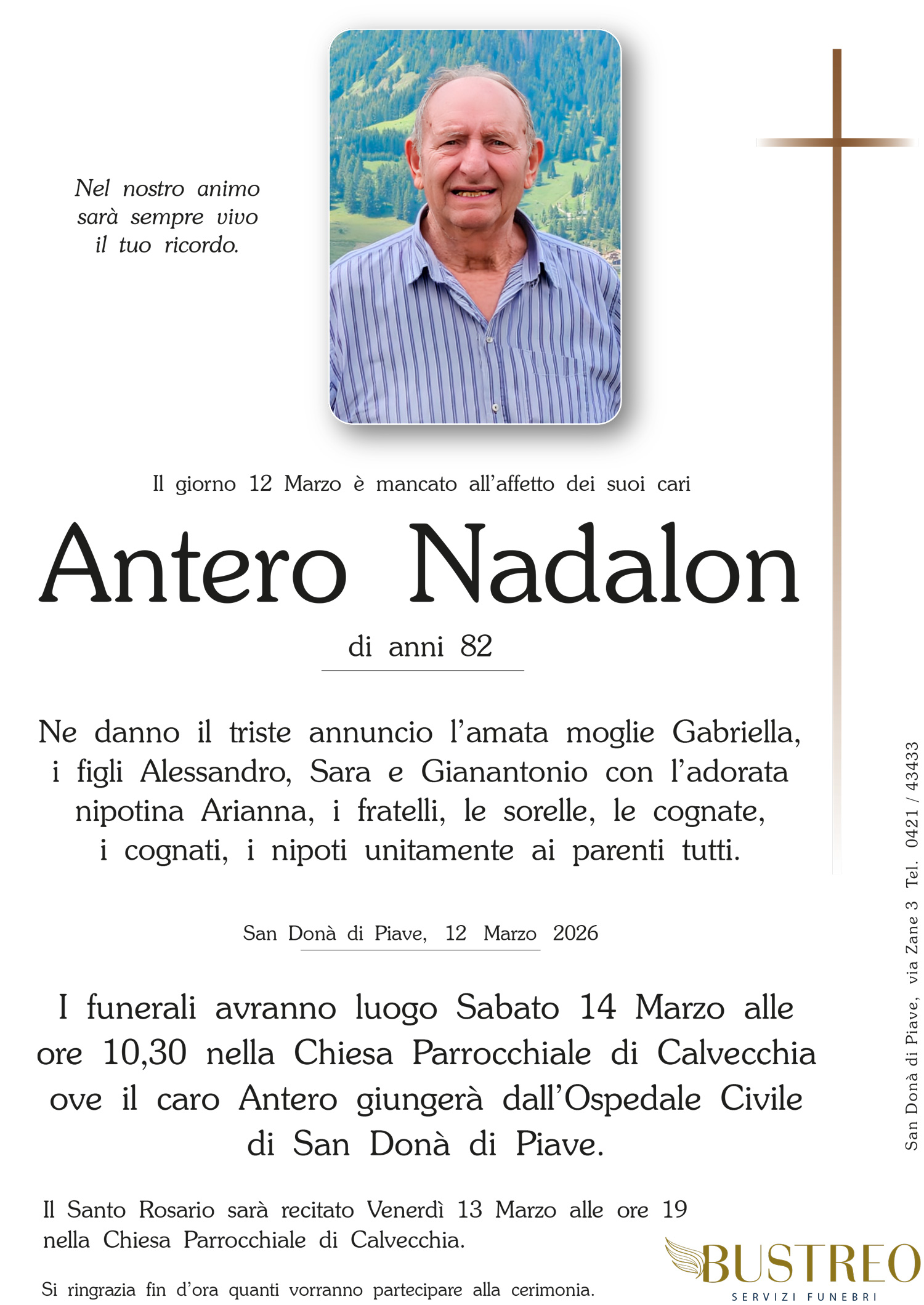 Possa il vostro dolore trovare conforto nel sostegno del Signore e nella certezza che vostro padre è sempre vicino a voi. Il calore della nostra amicizia riscaldi i vostri cuori.